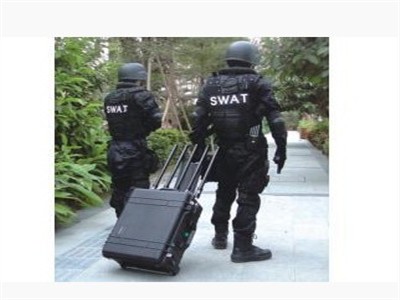 Frequency Bands from 400-2500Mhz. •Easy of mobility, can be carried like a trolley. •Light in weight of case. The weight of complete system up to 28Kg. Easier to carry. •Jams simultaneously up to 5 selected frequency bands. •Maximum RF output power up to 85Watt. •Antennas type: high gains omni-directional antennas (Standard) for all bands.(Directional antennas are also optional) •Power source: Internal battery (DC) & AC mains (external) both. •Built-in battery back-up. Full system operation for up to 2Hours from internal rechargeable battery •Remote control available to ON/OFF the jammer. •High Power RF amplifiers with VSWR and temperature self-protection technology.